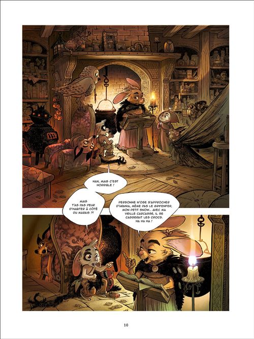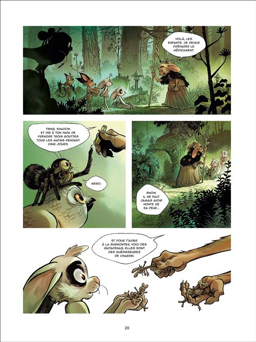 Bienvenue dans cette fable bestiaire, où un groupe d’amis nous emmène dans des aventures trépidantes dans la forêt. Au chant des grenouilles est une histoire d’amitié, de courage mais portant un message fort : celui de protéger la nature qui nous entoure, mère de tant de merveilles. Des remèdes de grand-mère, des recettes naturelles, on trouve dans cette bande dessinée des encarts pédagogiques qui nous expliquent les secrets que la nature recèlent. Dans une palette de vert – de la vive chartreuse, à la douce sauge en passant par l’olive, la bouteille ou le sapin – se mêle le sépia, marque d’un ancien temps, dans ce style résolument victorien que la collection « Métamorphose » porte en étendard. Cette série-concept est dessinée par des auteurs différents à chaque tome, laissant leur plume singulière (ré)imaginer la nature à chaque parution. Ce premier tome annonce une série fantastique qui donne la voix à la nature, dans toute sa beauté et sa pluralité.