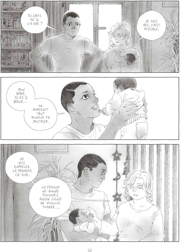 Verts, c’est une introspection dans l’intérieur des humains, dans leurs émotions, leurs sensations, leurs pensées et leurs peurs. Verts, c’est un témoignage de l’angoisse ambiante qui habite les humains, de cette anxiété qui nous dévore de l’intérieur et qui détruit l’espoir qui fleurit. Verts, c’est aussi une lettre ouverte à la nature, foisonnante, vibrante et insaisissable. D’un face à face entre humain et nature, les voilà à cohabiter ensemble, dans un même corps qui meut, qui évolue et se transforme. L’humain éclot et la nature prend vie. Là où nous pensons que l’un prend le dessus sur l’autre, c’est une symbiose qui nous fait face, une harmonie entre les branches qui poussent sur les bras et les mains qui les caressent. Comme des paysages miroirs de l’âme, la nature prend place chez l’homme et résonnent avec ses émotions, ses doutes, son être. Narré avec brio par Patrice Lacan et dessinée par le pinceau magique de Marion Besançon, Verts, c’est avant tout un ouvrage poétique et brûlant d’une réalité plus qu’actuelle, à lire absolument !
