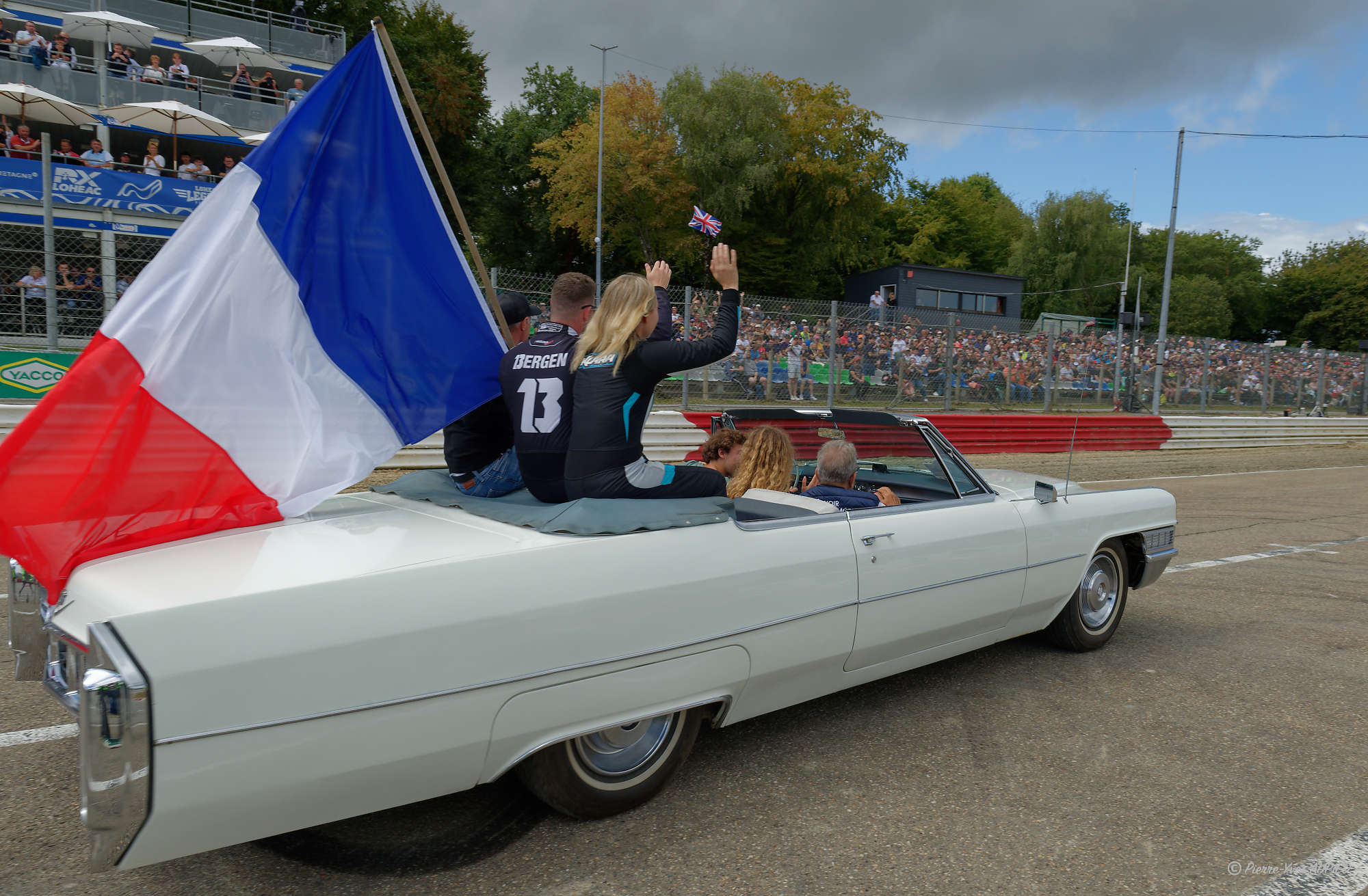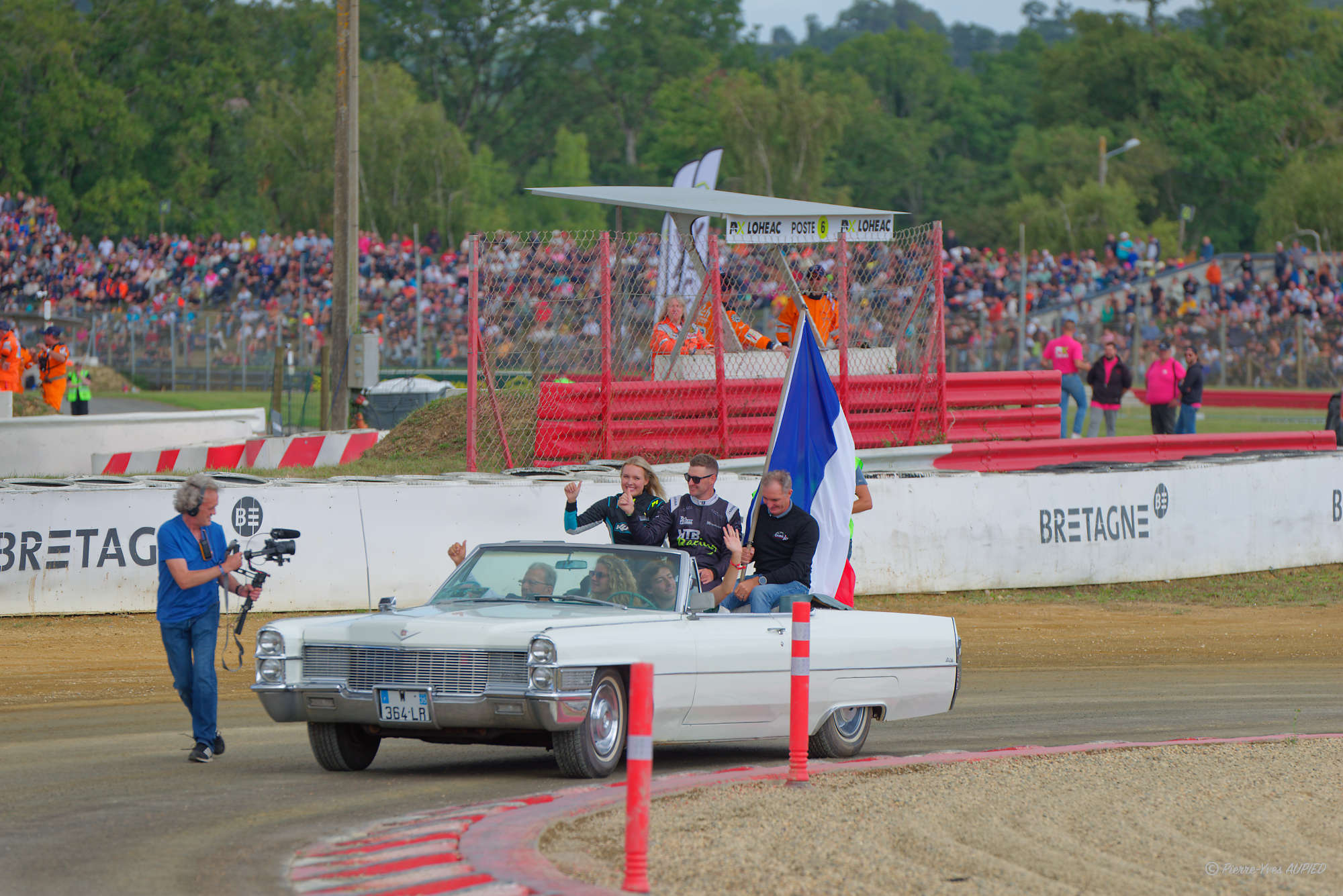 La journée de dimanche fut marquée par la visite des invités d’honneur parmi lesquels nous pouvions retrouver Madame Françoise Gatel, Ministre déléguée auprès du ministre de l’aménagement du territoire et de la décentralisation, chargée de la ruralité. Madame la ministre était entourée par Michel Hommell (créateur du Musée et du Rallycross de Lohéac) et par Patrick Bertin (Maire de Lohéac) Monsieur Amaury de Saint-Quentin, préfet de Bretagne était aussi présent à cette occasion ainsi que le célèbre navigateur Jérémie Beyou, Skipper du Bateau Charal. Le pilote norvégien vice champion du monde Andréas Bakkerud et la pilote suédoise Klara Andersson posèrent pour la photo sur la ligne de départ aux cotés de Patrick Germain et Nathalie Tollemer (Présidente de la Ligue Bretagne Pays de la Loire de sport automobile)