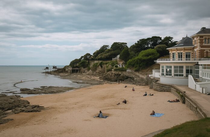 Cachée derrière les pins, bordée par des roches noires aux reflets mordorés, la plage de l’Étang a des allures de tableau japonais. On y accède par un sentier discret, presque secret. À marée basse, les enfants collectent des coquillages, les plus grands plongent depuis les rochers. La légende dit qu’un peintre nantais du XIXe siècle y aurait trouvé l’inspiration de sa série de toiles « Le Silence des vagues », conservée au musée Dobrée.