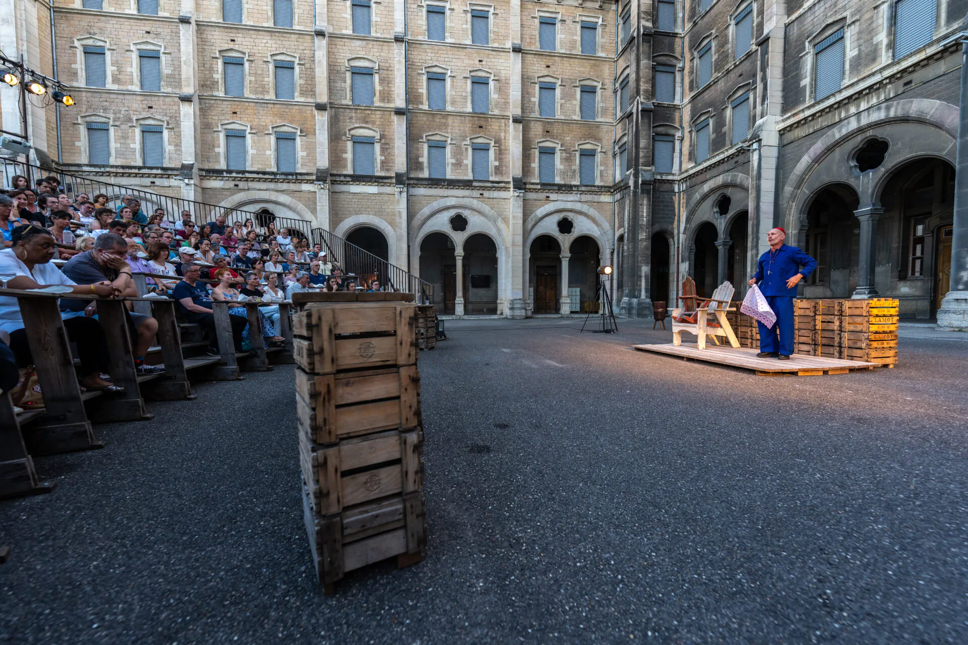 C’est la quatrième fois que la Comp. Marius vient poser son gradin à Rennes pour Les Tombées de la nuit. « C’est un festival où on sent une grande tradition et beaucoup de connaissances dans le travail avec les artistes. Ils font de vrais efforts pour trouver de beaux endroits où jouer et ils ne cherchent pas la solution facile, ils changent de lieu à chaque fois », déclare Waas Gramser, metteuse en scène et comédienne de la compagnie. Il faut dire que le parti-pris d’un théâtre hors les murs correspond tout à fait à la philosophie du festival rennais qui prend l’espace public comme une scène.