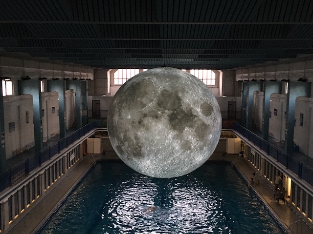 À la piscine Saint Georges de Rennes, après le succès de juillet, les Rennais nageront de nouveau au clair de lune du 7 au 28 janvier 2018 ! Grâce à l’œuvre de Luke Jerram, Museum of the Moon, à l’invitation des Tombées de la nuit. L’artiste plasticien en dit un peu plus à Unidivers. In the moon for love…