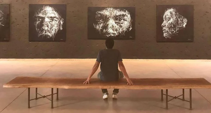 Il ne peint que des portraits, des visages, et devient célèbre justement pour cela, qu’il représente Michelle Obama ou Charles Aznavour (« Il y a chez lui une résilience, une bataille avec lui-même, qui me touche »), Aimé Césaire ou Édith Piaf. Très vite, les commandes affluent. Et lui qui, adolescent, gagnait quelque argent (un euro au départ, un million à l’arrivée) en tatouant des souliers – art délicat auquel il s’est perfectionné en allant à Tokyo observer le savoir-faire des tatoueurs, le voilà bientôt entouré de pots de peinture acrylique qu’il renverse sur d’immenses toiles à la façon d’un Jackson Pollock qu’il admire, maître du dripping. Sa technique est faite de couches compactes de peinture et de multiples traits entourant et croisant ses visages. On retiendra, parmi ses œuvres marquantes :