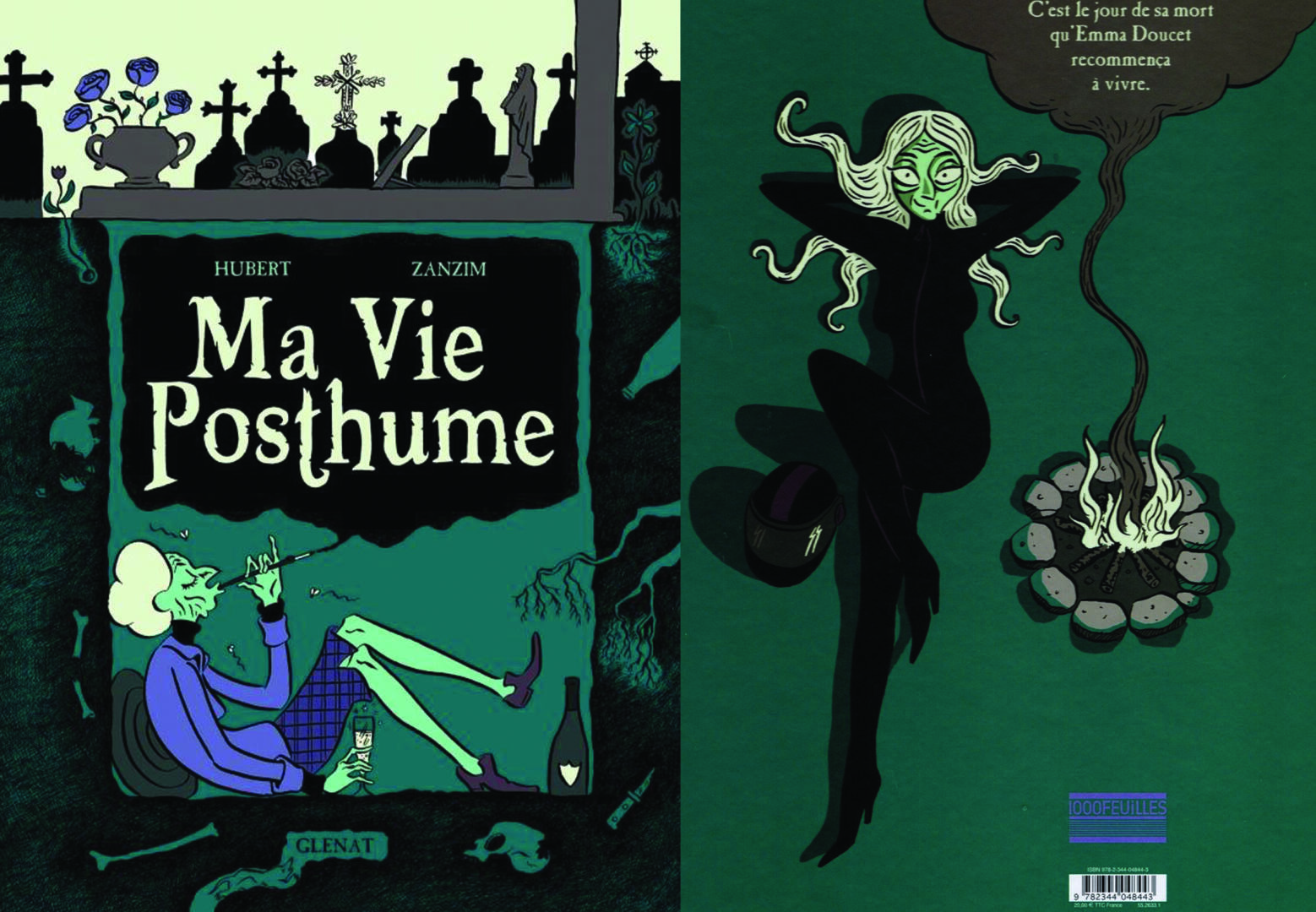 Après une première rencontre autour du diptyque Les Yeux Verts, sortis respectivement en 2002 et 2004, Hubert et Zanzim avaient réitéré leur compagnonnage avec La Sirène des pompiers (2006) et Ma vie posthume, une BD en deux tomes, sortis successivement en 2012 et 2013. Les éditions Glénat viennent de republier cette dernière en version intégrale. Quel plaisir de retrouver, ce scénario intelligemment drôle et ces dessins parfaitement colorés pour une histoire magnifiquement fantasque. À la nouvelle couverture s’ajoute en bonus un cahier graphique qui révèle les ébauches d’une histoire qui parcourt un siècle au travers de la vie d’une vieille dame… morte.