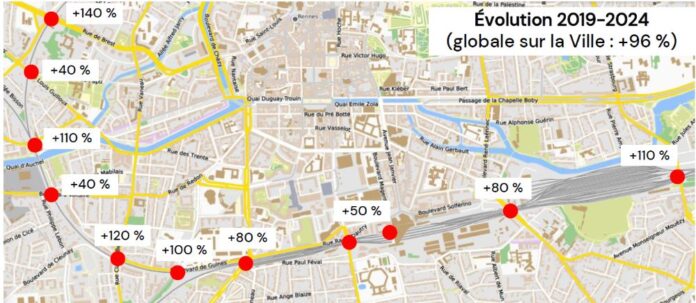 L’ensemble de ces actions s’inscrit dans une tendance de fond. D’après le tableau de bord du Plan de déplacements urbains 2020-2030 piloté par l’Audiar, le trafic cyclable à Rennes a bondi de 96 % en semaine entre 2019 et 2024. Ce dynamisme est porté par la montée en puissance des vélos à assistance électrique et par les liens cyclables renforcés entre Rennes et sa première couronne.
