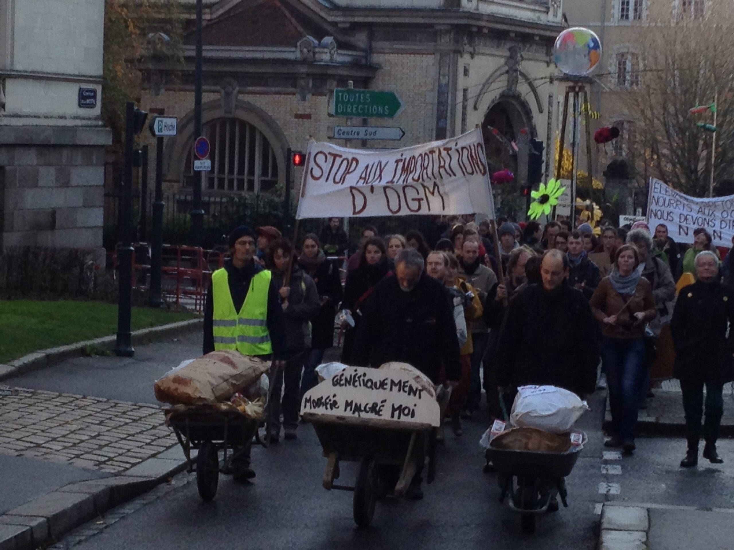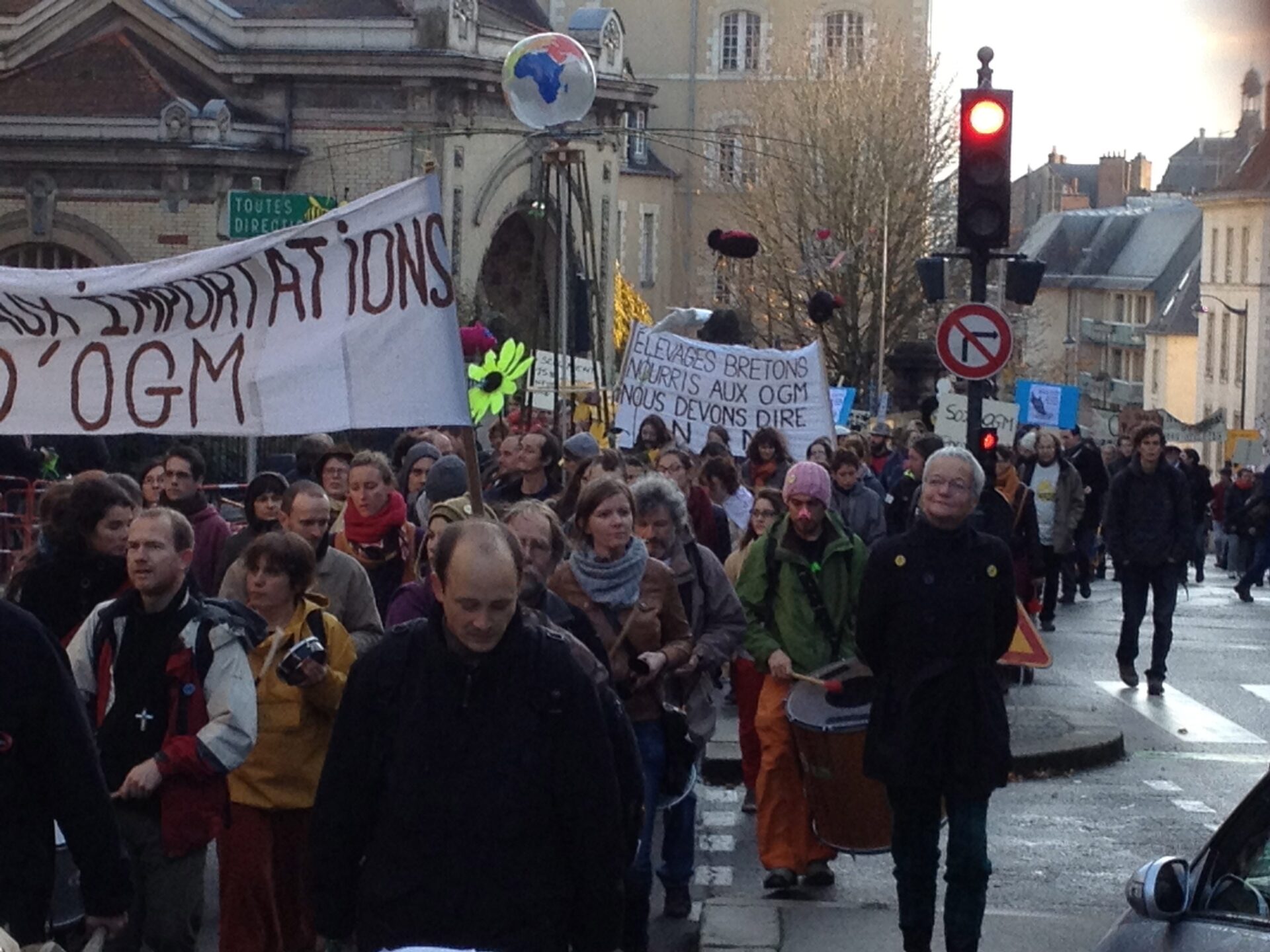 OGM : ni dans les auges, ni dans les assiettes ! – tel est le slogan qui a ponctué ce samedi 24 novembre la manifestation anti-OGM qui a démarré de la préfecture à 14h. Quelques centaines de manifestants et quelques dizaines de brouettes ont traversé au rythme des percussions le centre-ville. Tant qu’une étude objective sur les OGM n’aura pas lieu, tout laisse croire que ce type de manifestations ne décroitra pas.