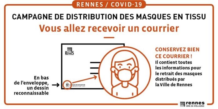 Pour chaque foyer rennais, une seule personne devra se présenter sur le lieu de distribution indiqué sur le courrier dont il devra se munir ainsi que d’une pièce d’identité et d’un justificatif permettant de connaître le nombre de personnes composant le foyer. Les masques lui seront alors remis en une fois, à raison d’un masque par membre du foyer. Les modalités plus précises de distribution feront l’objet d’une large communication, dans tous les médias et par voie d’affichage.