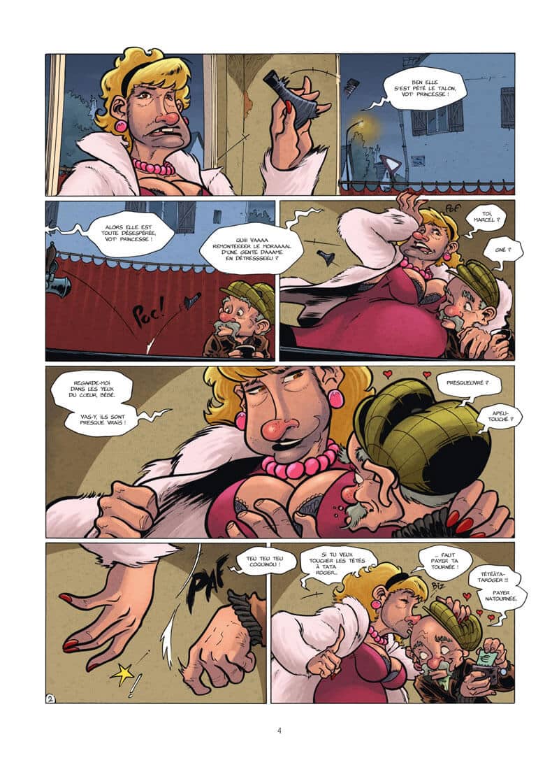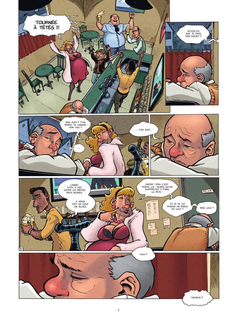 Tout est dit et le lecteur sait ce qui l’attend. Ce père, Maurice ou Lulu, d’abord accoudé et endormi sur le comptoir, va être facilement reconnaissable tout au long de la BD. Il possède un gros nez rouge, comme un clown, pour identifier le personnage, un nez rouge qui cette fois-ci ne fait pas rire et pourrait donner plutôt envie de pleurer.