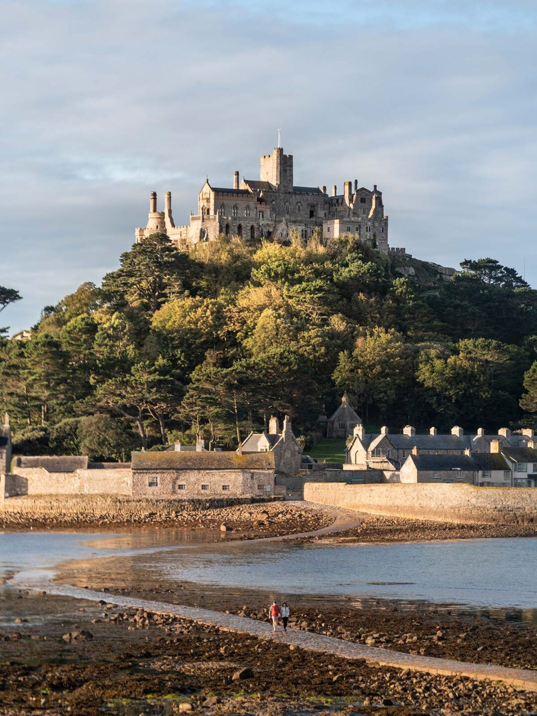 Le Mont-Saint-Michel possède, lui aussi, un « jumeau » de l’autre côté de la Manche : St Michael’s Mount, sur la côte sud des Cornouailles, face à la ville de Marazion. Le parallèle n’est pas seulement esthétique. Le site anglais a été lié à l’abbaye normande du Mont-Saint-Michel dès le Moyen Âge : un prieuré bénédictin y a été établi, et l’île a connu une histoire religieuse et militaire dense (monastère, fortifications, reconversions successives). Aujourd’hui, on y vient pour le château, les vues maritimes, la traversée à marée basse et ce sentiment rare d’entrer dans un paysage « à l’ancienne », où la géographie dicte encore le rythme de la visite.