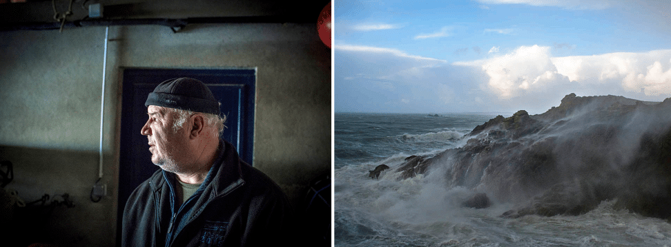 Guillaume Herbaut saisit la vraie vie fouettée par les déferlantes, le quotidien de cette population dépendante du continent pour les navettes de bateaux qui conduisent les plus jeunes vers leur collège, et les autres vers le ravitaillement. Vivre dans une île à l’année oblige à se soumettre au climat, aux vents et aux courants…