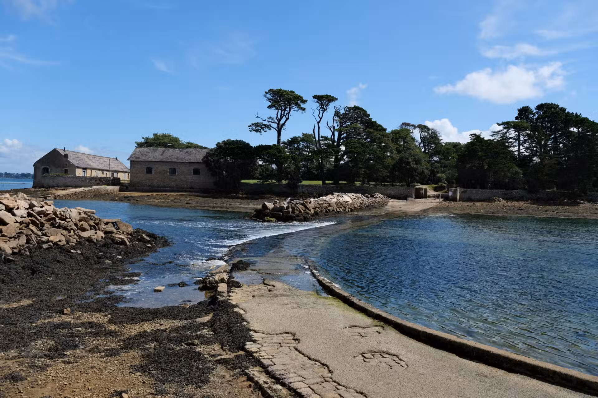 À marée montante, le pont est submergé par un courant d’eau violent, le courant de la Jument, deuxième courant le plus fort d’Europe qui peut atteindre près de 9 nœuds. Et le sol devient glissant à cause des algues. Plusieurs noyades ont eu lieu, il est demandé aux promeneurs de rester vigilants et de ne pas tenter de passer à la dernière minute.