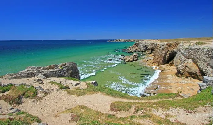 La presqu’île de Quiberon est unique. Entourée par une eau bleue claire, et de belles plages de sable blanc, cette terre océanique est connue pour sa côte. Harcelée par la mer et les vents, l’érosion y a façonné d’innombrables criques, des récifs et des grottes accessibles à marée basse.
