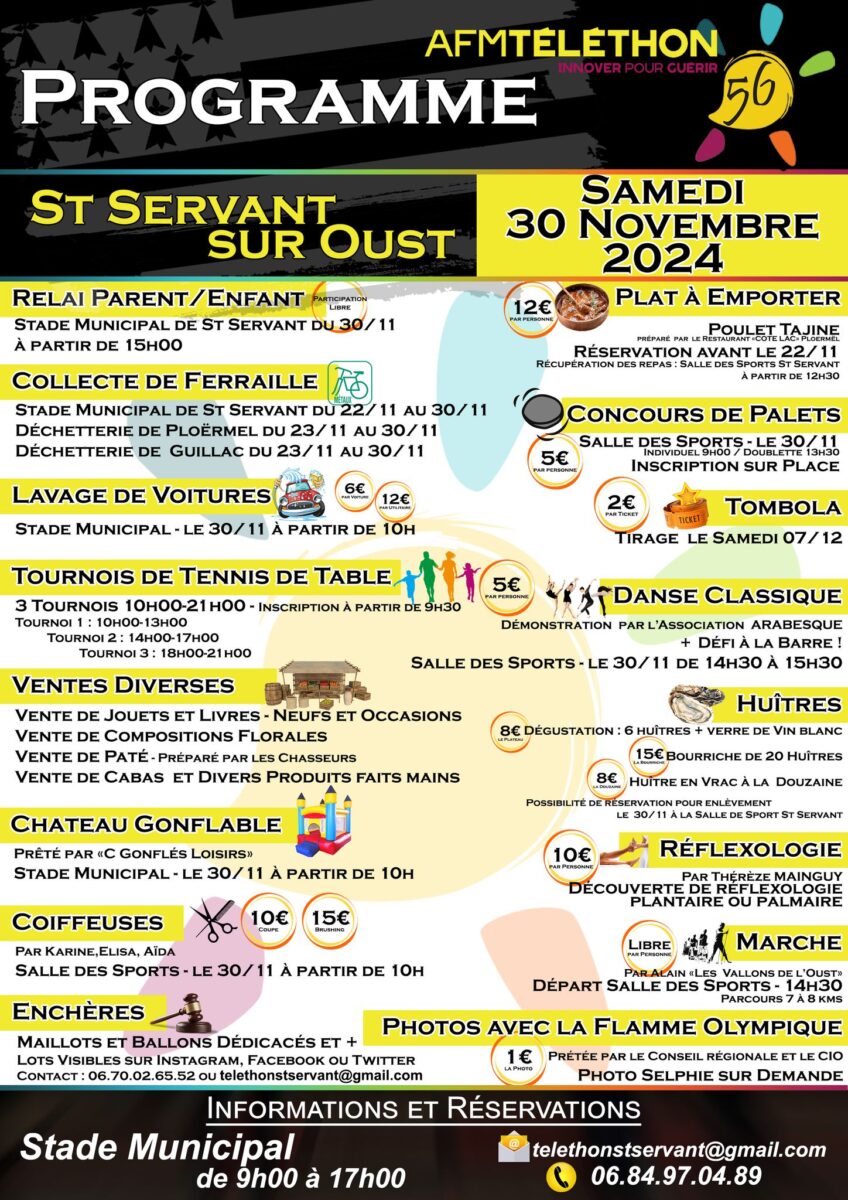 Quelques autres affiches avec leur programme complet et un panel d’animations pour le Téléthon dans le Morbihan :