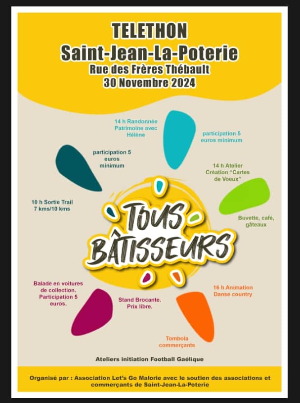 Les communes du Morbihan, comme 20 000 autres de France, se mobilisent pour le Téléthon, un événement caritatif organisé par l’Association Française contre les Myopathies (AFM). L’édition 2024 se déroule les vendredi 29 et samedi 30 novembre 2024 et pour but de financer des projets de recherche sur les myopathies, sur les maladies génétiques neuromusculaires et sur les autres maladies génétiques rares.