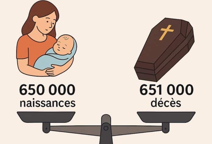 Un frisson discret traverse les chiffres. 651 000 morts, 650 000 naissances. Ce n’est presque rien, mille voix d’écart à l’échelle d’un pays. Mais ce murmure statistique, publié sans fanfare par l’Insee, scelle un basculement inédit : pour la première fois depuis la Libération, la France compte plus de cercueils que de berceaux. Un solde naturel négatif, discret mais lourd. Une bascule démographique qui n’est pas un effondrement, mais un avertissement — et peut-être le symptôme d’un trouble plus profond.