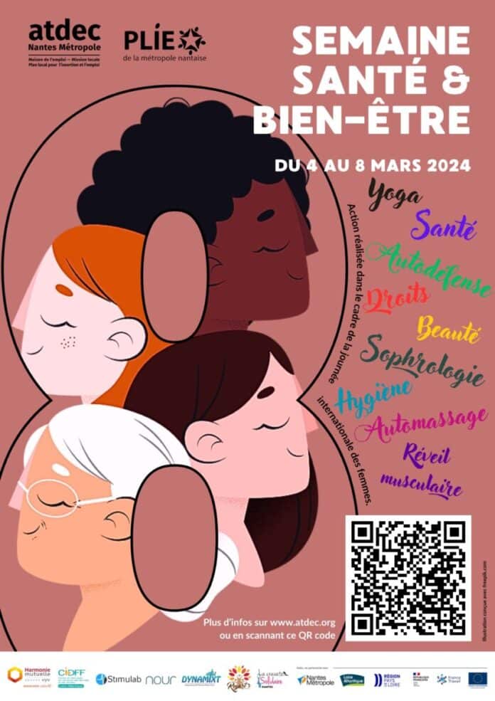 Accorder de l’importance à sa santé est essentiel lors de son parcours de recherche d’emploi. S’accorder du temps pour soi est souvent plus facile à dire qu’à faire dans bien des quotidiens de demandeurs d’emploi, encore plus lorsque l’on est une femme… C’est pour cela que du 4 au 8 mars 2024, le PLIE (Plan Local pour l’Insertion et l’Emploi) de l’Atdec Nantes Métropole et ses partenaires s’engagent pour la Journée Internationale des femmes 2024 et proposent, à destination des femmes éloignées de l’emploi, la Semaine Santé & Bien-être – 2ème édition, un événement entièrement gratuit, sur inscription.