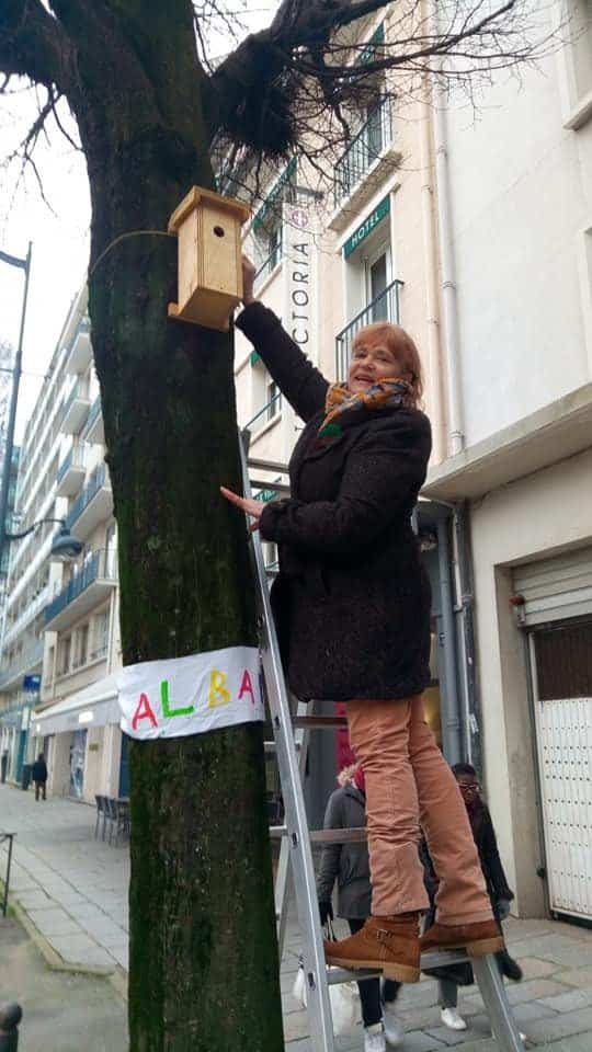 Unidivers – En plus de proposer aux Rennais d’adopter un arbre un samedi sur deux, vous menez mensuellement des « actions choc » que vous gardez secrètes jusqu’à la veille afin de décupler l’effet de surprise. Quelles sont les raisons qui vous ont poussées à installer 12 nichoirs avenue Janvier le 24 janvier 2020 ?
