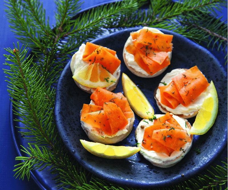Pour les régimes végétaliens, avec les carottes acquises au marché, nous vous proposons une recette d’un amuse-bouche de la blogueuse culinaire Marie Laforêt : des blinis et gravlax de carotte. Pour le gravlax, laissez mariner 12 heures des carottes coupées en fines tranches à la mandoline avec du sel, de l’aneth hachée, du sucre de canne, du poivre blanc concassé et des baies roses. Pour les blinis, mélangez 200 grammes de farine avec 2 c. à s. de levure, 2 c. à s. de fécule de mais, 1 c. à s. de sucre, une pincée de sel, 200 ml de yaourt de soja et 4 c. à s. de lait d’amande. Dans une poêle huilée, déposez une cuillère de pâte et faites cuire une minute de chaque côté. Répétez l’opération de façon a obtenir environ vingt blinis. Au moment de servir, étalez un peu de crème de soja lacto-fermentée sur chaque blini et garnissez de gravlax de carotte et d’un trait de jus de citron. Pour plus de couleurs, alternez les variétés de carottes à retrouver sur le marché.