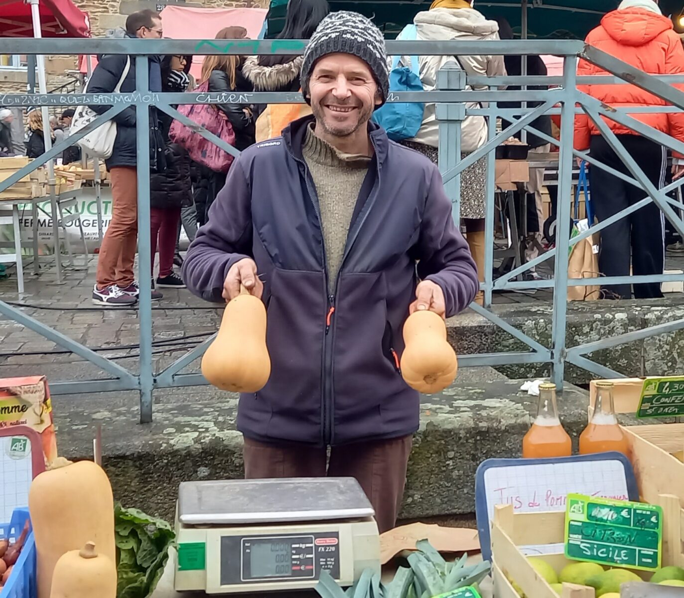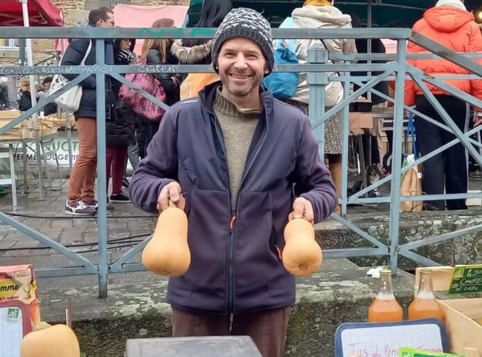 Pas très loin, le joli stand garni de légumes biologiques, si ce n’est pour la plupart en permaculture, est tenu par Tony. Le producteur des Jardins de la Brutz, à Teillay en Ille-et-Vilaine, nous donne sa recette de dessert gourmand et de saison : « C’est un moelleux au chocolat et au butternut que j’ai moi même réalisé pour une soirée entre amis. Pour cette recette, épluchez, coupez en morceaux puis cuisez votre butternut bien mûre à la vapeur pour en faire une purée. Mélangez trois œufs, 80 grammes de sucre roux et deux cuillères à soupe de poudre d’amande. Ajoutez à cette préparation votre purée de butternut, 200 grammes de chocolat noir fondu, puis 40 grammes de farine. Versez la préparation dans un moule et enfournez 10 minutes à 200°C. » Tony nous donne aussi son astuce pour reconnaître un butternut bien mûre : « Il faut choisir un butternut sans veines vertes, mais il est bien sûr possible de la remplacer par une autre courge comme du potimarron. Je vous conseille d’ailleurs un velouté réconfortant à base de potimarron, carotte et orange pour commencer votre repas ». Comptez le jus d’une orange pour 1 kilo de légumes, et ajoutez les zestes avant de servir, accompagné de pain d’épices toasté.
