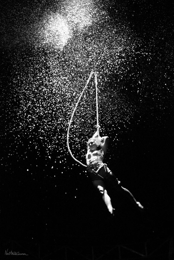 Avec Bianco, le Nofit State circus nous plonge dans un univers frénétique de chaos esthétique où les frontières se déplacent jusqu’à presque s’effacer dans une circulation commune. Artistes, techniciens, spectateurs, chacun dans sa sphère, se meuvent dans un mouvement que le spectacle, lui-même, a initié et contrôle. Voici que viennent les dragons !