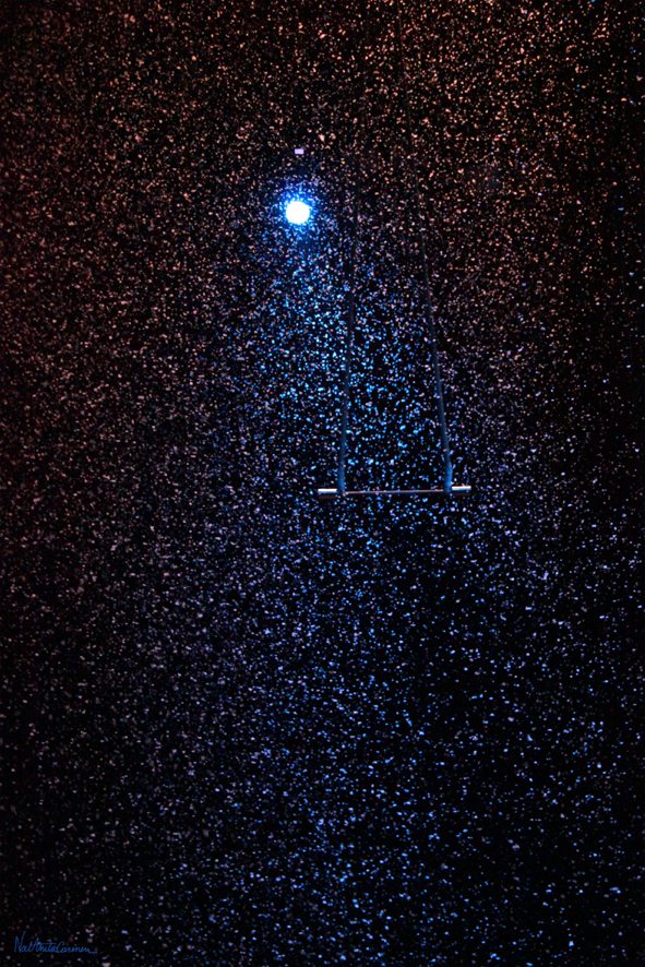 Le contrepoids nécessaire aux numéros de voltige aérienne est assuré par les artistes et la performance prend alors plus encore l’allure d’un ballet vertigineux. Pas de dissimulation, le « décor » et la structure font corps… Apparente et manœuvrée par des mains et des corps habiles, la mécanique s’humanise. Elle prend une part active à l’esthétique du chaos et s’anime d’un visage amical malgré les mouvements parfois rapides et presque violents que la troupe lui imprime. Mais elle s’amuse. Comme toute la troupe, elle s’amuse à faire peur, à surprendre. Bianco vient vous chercher, vous provoquer dans votre quant-à-soi de « spectateur roi ». Vous bousculer dans vos certitudes de regardeur aguerri.