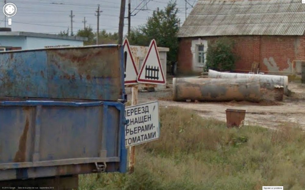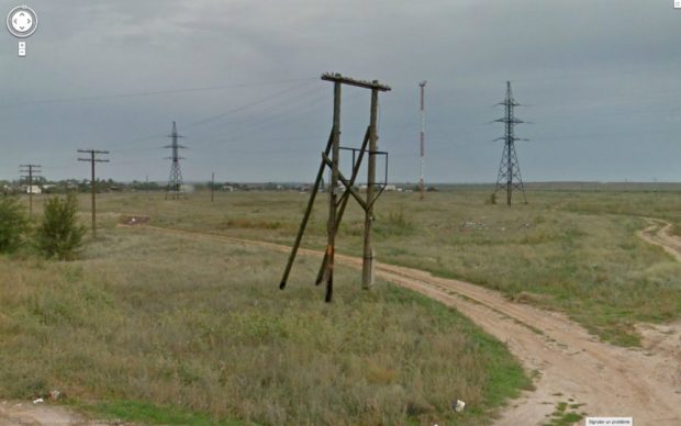 Je suppose que l’abri sert à ceux qui attendent un bus. Ou peut-être était-il prévu pour devenir un petit commerce – fruits et légumes, buvette. Bêtement, je ne pose pas la question. Sergueï, d’un doigt sur le trackpad, se promène dans l’image. Il panote pour me montrer à quel point on est au milieu de nulle part. Il dit : « C’est dingue, hein, quand même, qu’on puisse se promener ainsi partout dans le monde… »