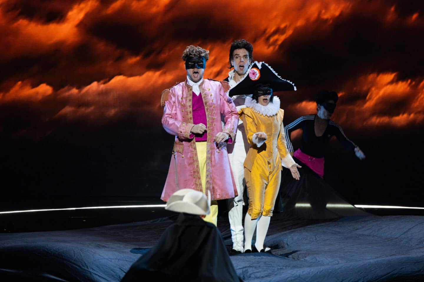 Caché dans la fosse, et sous la direction du chef Rémi Durupt, l’orchestre national de Bretagne s’amuse de cette partition qui rappelle clairement l’esthétique mozartienne, sans se priver d’allusions explicites à d’autres grands compositeurs présents et passés. Il nous propose une pâte musicale énergique et joyeuse et recevra du public présent une ovation méritée.