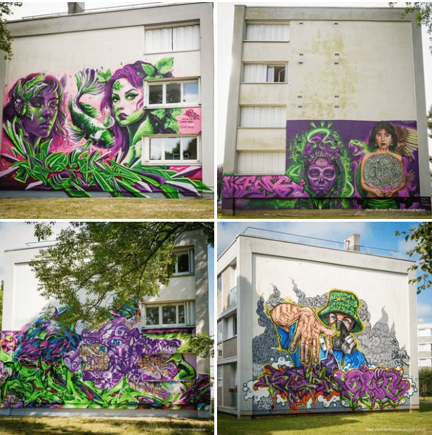 Cette démarche expérimentale est offerte par la Ville de Paimpol et favorise la rencontre entre l’art et les habitants. La peinture utilisée est écologique et à base d’algues. Aux commandes de cette création de pièces de rue uniques, on retrouve le collectif TSF crew et l’artiste Nicolas Poujol, également directeur artistique du festival Meeting of styles.