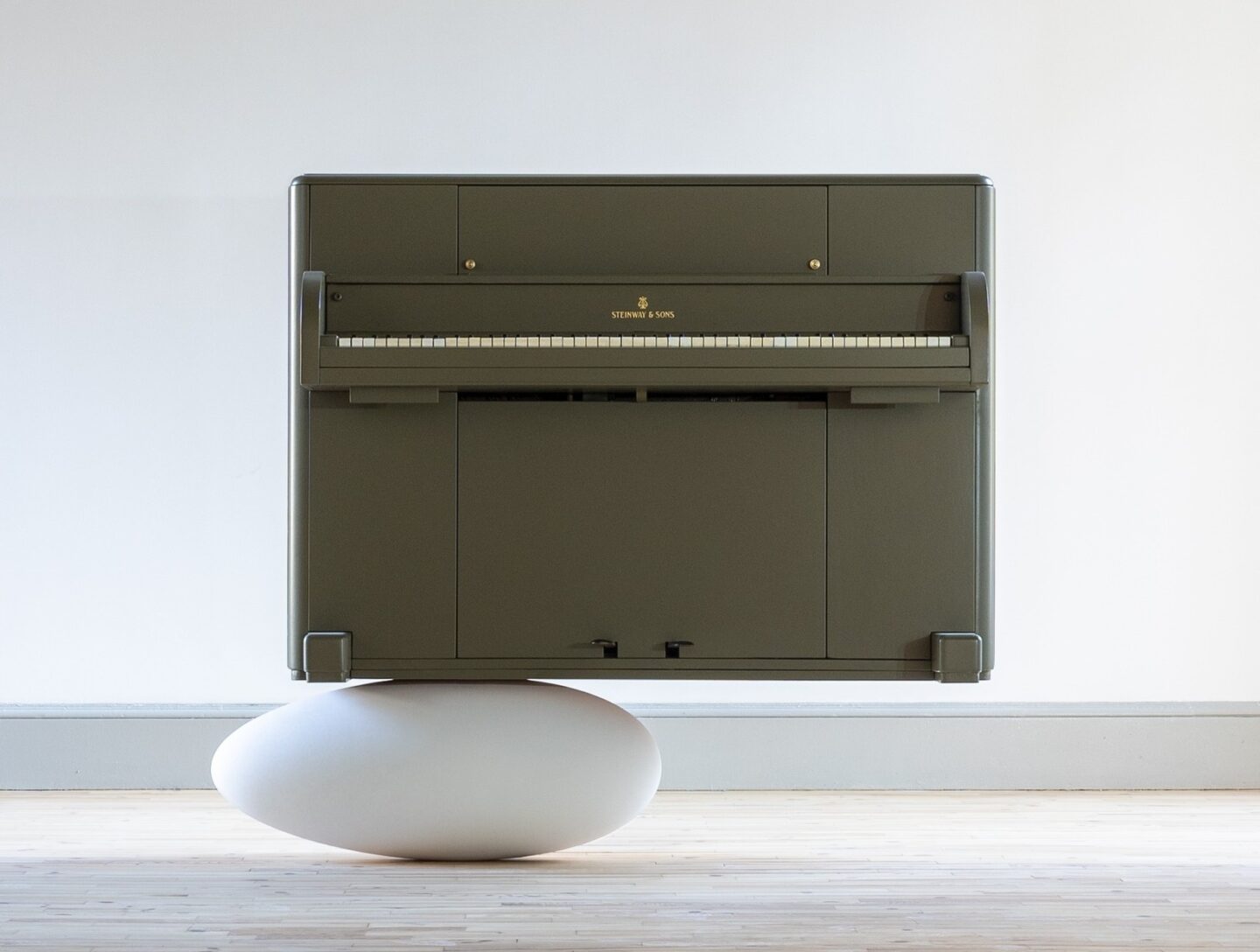 L’exposition s’ouvre sur une vision des plus surprenantes : un piano est suspendu au dessus d’un cocon ou d’un nuage blanc. Il s’agit d’un piano militaire américain qui date de 1944, parmi les 2000 pianos de marque Steinway Victory Vertical envoyés en France avec les soldats du débarquement. Ils avaient pour objectif de leur apporter de la bonne humeur entre les combats. Le piano est devenu le symbole du réconfort et de la guérison et incarne la puissance de la création face aux blessures de l’Histoire.