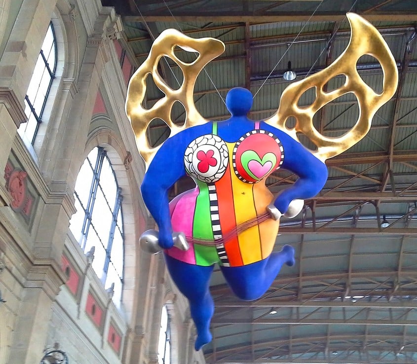 Parfaite autodidacte, Niki de Saint Phalle a placé sa vie et ses idées personnelles au cœur de son art ; elle livre une œuvre engagée et féministe. Elle est connue surtout pour ses monumentales Nanas en papiers collés et résine. Ces femmes monumentales sont vues par l’artiste comme étant libérées du mariage et du masochisme : Elles sont elles-mêmes, elles n’ont pas besoin de mecs ; elles sont libres et joyeuses…