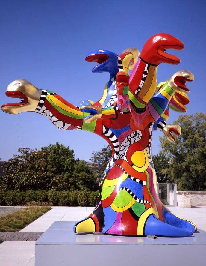 La célèbre sculpture L‘arbre aux serpents de Niki de Saint Phalle a été restaurée entièrement en 2016-2017 ; elle est exposée en permanence sur la terrasse du Musée des Beaux Arts à Angers (49) et fait l’objet de toutes les attentions…