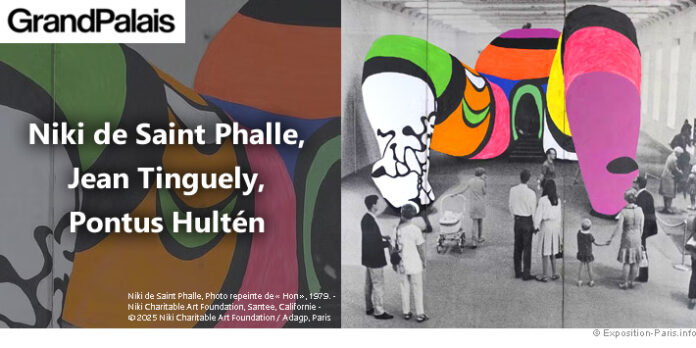 Pendant sa période de fermeture, le Centre Pompidou investit le Grand Palais qui expose les œuvres d’un couple mythique : Niki de Saint Phalle (1930-2002) et Jean Tinguely (1925-1991). L’exposition inédite, visible depuis le jeudi 26 juin 2025 le restera jusqu’au samedi 10 janvier 2026 ; elle plonge le public dans l’univers bouillonnant de ce couple, à travers le regard visionnaire de Pontus Hulten (1924-2006)