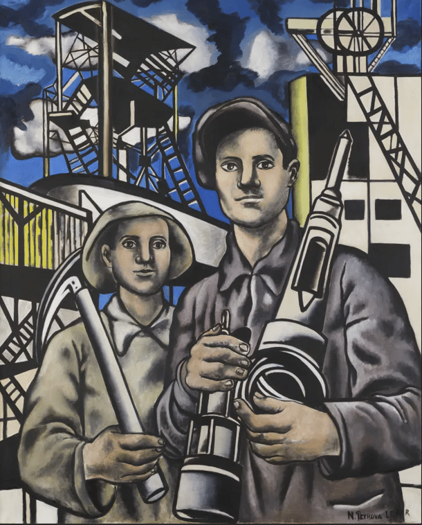 Quand le parti communiste passe commande à l’atelier Léger, c’est Nadia qui s’en charge. Il s’agit de décorer les grands congrès du Parti d’immenses portraits de héros communistes. C’est elle aussi qui représente les ouvriers avec des visages agréables, tenant parfaitement leurs instruments de travail, de parfaits personnages de propagande mettant en valeur la classe ouvrière.