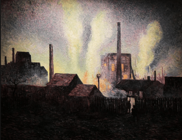 À Charleroi, dans les mines et les aciéries, il change d’échelle. La lumière des hauts fourneaux remplace celle du ciel parisien. Le paysage industriel devient matière plastique, presque mystique. C’est ici que son anarchisme rencontre le monde : non dans les théories, mais dans les visages des forçats modernes.