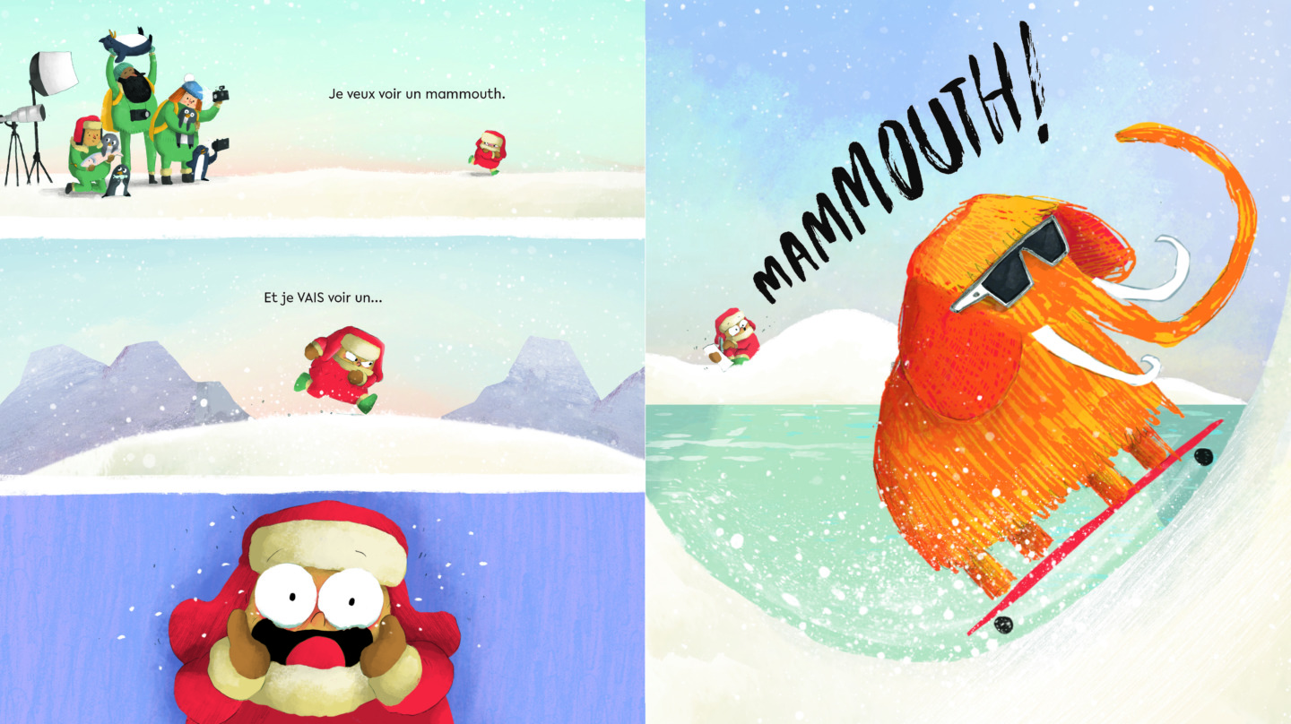 Cet album à l’humour décalé, aux grandes illustrations colorées et pleines de caractère nous emmène dans un voyage au pôle Sud, dans le froid glacial de la banquise, à la recherche de ces mystérieuses créatures disparues depuis si longtemps. À travers cette nouvelle histoire, Alex Willmore nous propose une panoplie de personnages déjantés, entre les pingouins vaniteux, le petit George curieux et aventureux ou encore un étrange mammouth tantôt danseur de ballet, tantôt skateur dans la neige et plongeur artistique à ses heures perdues. C’est un petit moment de magie qui se dévoile tandis que l’on suit le parcours de notre héros, déterminé à voir un mammouth ! Nos lecteurs n’ont qu’à bien se tenir, c’est une avalanche de surprises en perspective qui nous attend en feuilletant les pages de cet album.