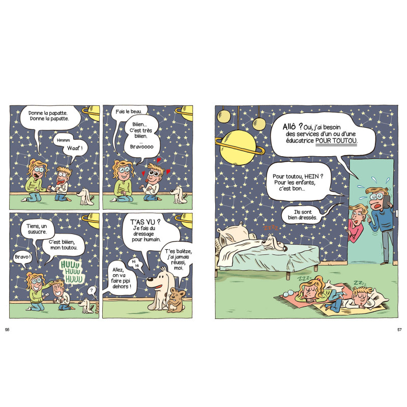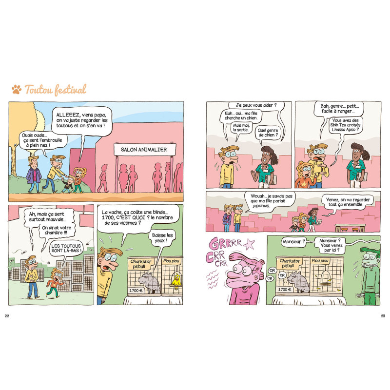 Tout est tellement meilleur avec une boule de poil qui court dans la maison, pisse sur le canapé, fait ses selles sur le tapis et aboie à longueur de journée… En tout cas, pour Camille et Tim, cela ne semble pas les rebuter, bien au contraire ! Prêt à tout pour convaincre leur parent d’adopter un chien, les voilà redoublant d’efforts pour les attendrir, et tous les coups sont permis pour atteindre leur but… Parce qu’après tout, la fin justifie toujours les moyens, pour les deux petits chapardeurs ! Une BD hilarante dessinée avec la patte experte du Cil Vert qui nous emporte dans cette maison décalée, avec une famille recomposée, tous plus excentriques que les autres. Du père sans réel autorité, la belle-mère qui suit le courant, les enfants au caractère bien trempé jusqu’au vieil hamster râleur.