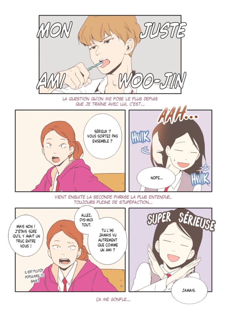 La relation qui lie Woo-jin et Ga-yeong est si forte que rien d’autre n’existe lorsqu’ils sont ensemble. Leur lien est tout ce qu’il y a de plus sincère, et ils sont persuadés d’être les meilleurs amis du monde. Mais ils semblent être les seuls à le penser ! Leur complicité est si grande qu’en les regardant, personne ne veut croire à une simple amitié. Et de l’amitié à l’amour, il n’y a qu’un pas…