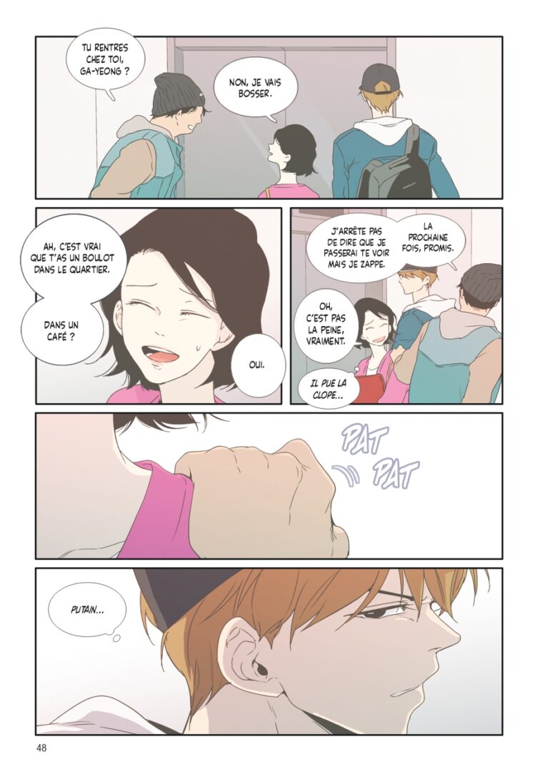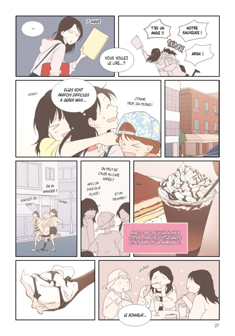 Le premier tome d’une série à succès sur Delitoon fait son apparition en version papier ! Le thème du “friends to lovers” est bien amené avec les différentes problématiques qui se posent quand l’amour fleurit dans une amitié… D’autres thèmes plus matures viennent ponctuer ce manhwa. Ils tournent autour des relations humaines (le couple, l’amitié, le consentement, l’école, le harcèlement), les sujets sont divers mais se regroupent autour d’un point central qu’est l’amitié entre les deux personnages principaux et leur passé. Les débuts se dévoilent par morceaux dans les flash-backs de Ga-yeong, de ses impressions, des difficultés et des a priori. Le manhwa s’introduit avec un tome 1 in-medias res et contient déjà la recette parfaite pour devenir une série phare Kbooks-Delcourt.