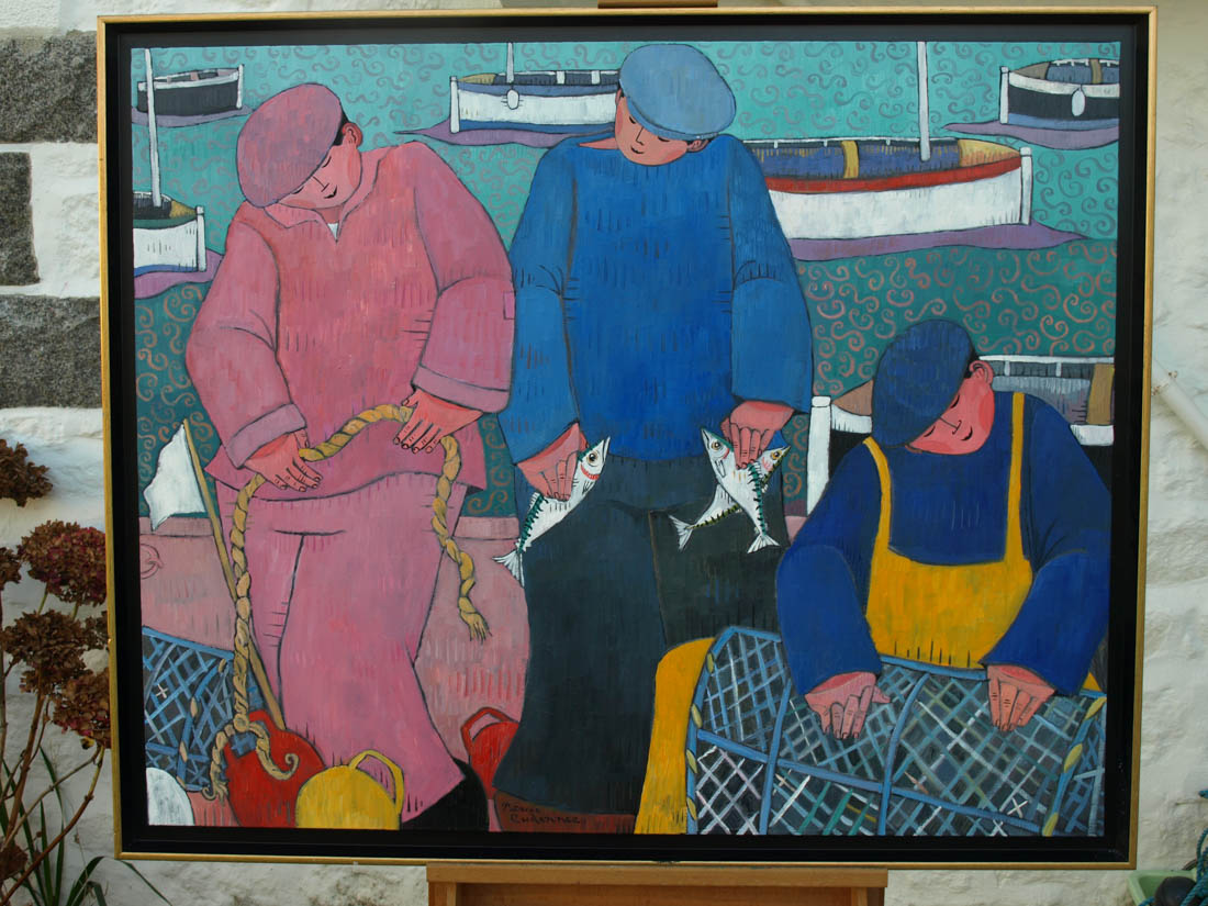 Patrice Cudennec développe depuis plus de quarante ans un univers reconnaissable. Couleurs franches, personnages rêveurs, pêcheurs poètes, jardins éclatants et paysages imaginaires composent une œuvre où la joie de vivre se mêle à une tendresse renouvelée.