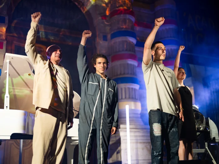 Sur scène, Patrick Scheyder, la comédienne Emma Varich, l’arboriste-grimpeur Thomas Brail, l’acrobate aérienne Faustine Morvan, le rappeur Nelson Delapalme et le compositeur et sound-designer Imam Morin forment une troupe soudée. Elle partage leur sensibilité et passion communes. « Ce sont des rencontres plus que des calculs, c’est ce qui fait notre cohésion », résume-t-il. D’âges et d’horizons différents (de 21 à 65 ans), ils apportent chacun une couleur singulière. « Sur scène, on montre la réalité de notre vie, ni plus ni moins, et on s’éclate, parce qu’on a aussi envie de vivre heureux. » Malgré les difficultés abordées, le spectacle reste bien un éloge : il offre une vision positive du monde, comme un antidote à l’éco-anxiété.