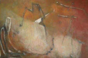À son arrivée à Plonéour-Lanvern, et plus précisément à Bodérès, Paul put enfin disposer d’un atelier et dès lors se consacra davantage, avec bonheur, à la peinture, autant qu’il le put jusqu’à ses derniers instants. L’expérience de la poterie lui a d’emblée apporté la maîtrise du geste, de la forme et des couleurs, celle de la poésie a permis l’osmose entre le sensible et la conscience. Poésie et peinture ont alors mêlé leurs profondeurs, dans un dialogue fécond et vivifiant. Pour Paul Quéré, peinture et poésie ne sont pas des créations, mais « une révélation / dont il est le médiateur »(1). « Attendant des couleurs / qu’elles fassent elles-mêmes la lumière en elles »(1), il abordait « la toile comme / une conscience sollicitée »(1).