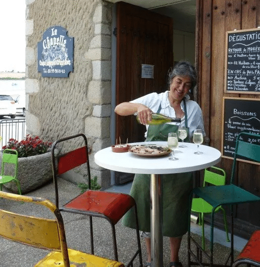 Pendant la période estivale, un plus est proposé : tables et chaises forment une terrasse à l’entrée de la Chapelle et la clientèle est invitée à se poser pour un moment de dégustation et de plaisir. Envie d’un apéritif original ? Les tapas made in Breizh, les moules au gingembre et piment d’espelette, les pétoncles, le thon en escabèche, les palourdes aux tomates séchées, les calmars piquillos et citrons frais et bien d’autres encore attendent les gourmands de passage…