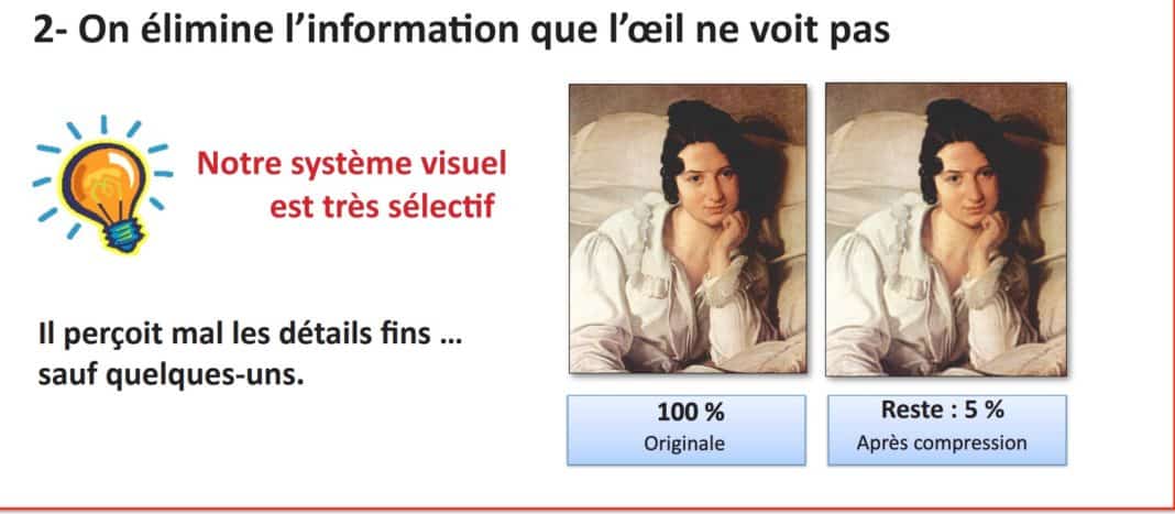 Pour compresser une image et ainsi faire en sorte que son envoi ne dure qu’une fraction de seconde, le format JPEG supprime 95 % de la photographie. Néanmoins, l’oeil ne fait pas la différence. Explications en images.