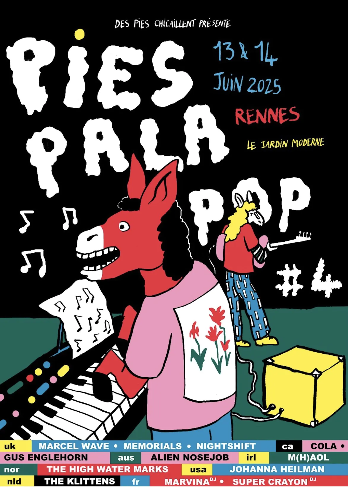 Le Festival Pies Pala Pop revient pour sa quatrième édition à Rennes les 13 et 14 juin 2025. La scène extérieure couverte du Jardin Moderne vibrera pendant deux soirées au rythme de la programmation pop-rock-indé internationale concoctée par l’association Des Pies Chicaillent.