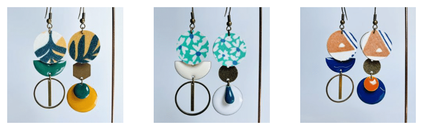 Et puis, les boucles d’oreilles sont les stars de la boutique : il y en a partout ! il y a celles de qui ont des formes géométriques en cuir recyclé ; celles de l’atelier des Ombrelles : algues, coquilles Saint-Jacques, méduses ; celles de Ratna Moriniaux : ampoules, étoiles ; celles d’Oz et la Terre, conçues en terre avec dorures ; celles de Pierres et La Lou, en pierres semi-précieuses et il y a les boucles d’oreilles créées par Adeline elle-même. Des bijoux uprecycling avec des capsules de café sont des pièces uniques qui viennent d’arriver en rayon !