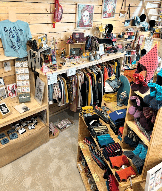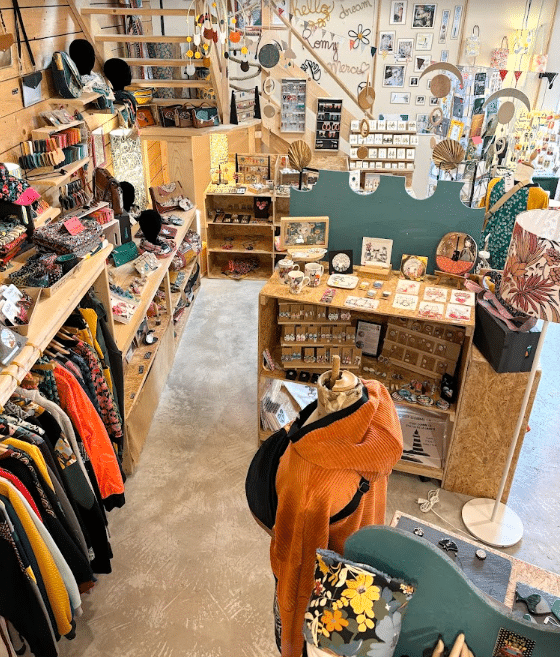 De plus en plus nombreux, ils sont aujourd’hui 89 créateurs, principalement de Bretagne, à proposer temporairement leurs réalisations artisanales à la vente, au rez-de-chaussée de la boutique la Petite Fabric : ils offrent tout un mélange de créations, allant du textile aux toiles d’artistes, en passant par les bijoux ou encore le verre et la céramique, etc. L’objectif de la boutique est de valoriser le travail artisanal français, en ayant une grande diversité de réalisations, toutes de qualité, à proposer à sa clientèle.