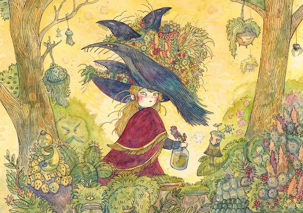Ses deux sœurs sorcières sont les gardiennes de la boutique Plantasia, qui tire son nom de l’œuvre phare de Mort Garson, compositeur allemand de musiques électroniques. Sorti en 1976, cet album de style ambient a la particularité d’être conçu pour être écouté par des plantes. « Mon entourage m’ a offert le vinyle quand il a appris sur quoi je travaillais. C’était cohérent avec mon histoire, le fait de considérer les plantes comme des êtres fantastiques. Ca donne aussi une histoire à la boutique des sœurs. »