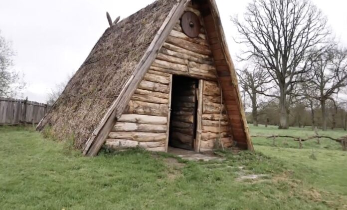À Pleine-Fougères, près du Mont-Saint-Michel (Ille-et-Vilaine) Roger Bouzic a passé un an à construire une hutte viking entourée d’un élevage de bergers yougoslaves ! Première construction en châtaignier d’un camp à venir, cette hutte va être prochainement disponible pour les vacanciers.