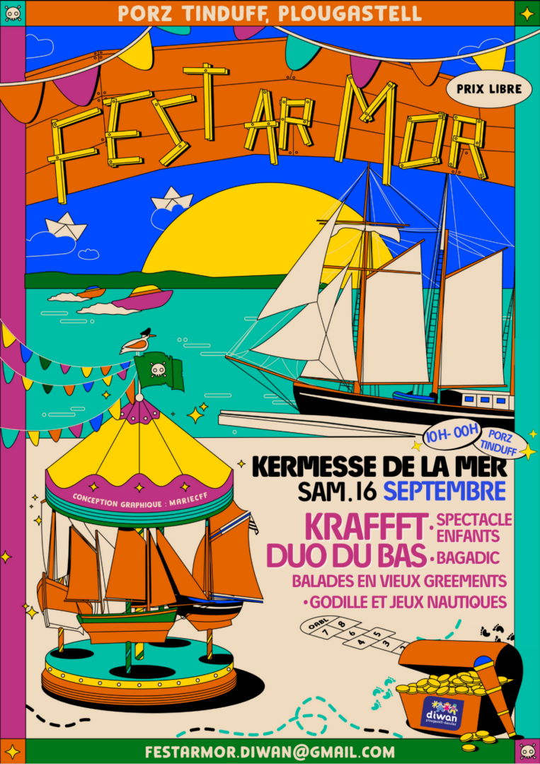 Rendez-vous le 16 septembre 2023 au port du Tinduff à Plougastel-Daoulas pour une kermesse de la mer. À travers une programmation riche, locale et engagée, l’école Diwan souhaite mettre le port en fête et fédérer autour de la langue bretonne, des artistes locaux et des bateaux du patrimoine.