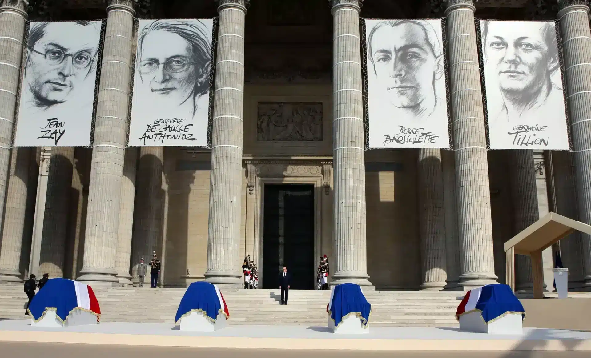 Le 27 mai 2015, Germaine Tillion, en compagnie de Genevièvre De Gaulle (1920-2002), une autre résistante déportée à Ravensbrück comme elle et devenue son amie, entre au Panthéon sous décision de François Hollande, président de la République de l’époque. Deux autres résistants font leur entrée au Panthéon le même jour : Pierre Brossolette (1903-1944) et Jean Zay (1904-1944).